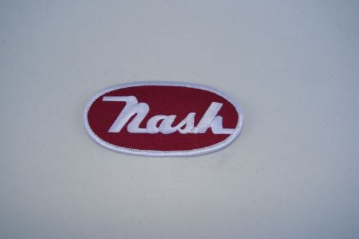 Nash Shop Coat Patch. Red, with white Nash scipt and border, 2" x 4" oval shaped. This is the patch that was worn in the 50's by Nash Service Personnel on their shop coats.