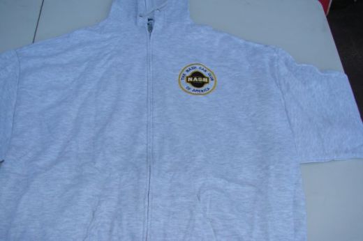 Hooded Sweatshirt or jacket with zipper and Nash Emblem.