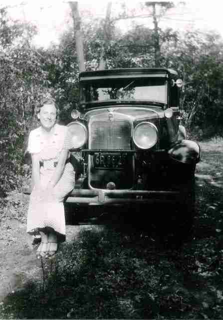 Bertha A. Adams Of Valley Stream, NY in 1935 sitting on the bumper of